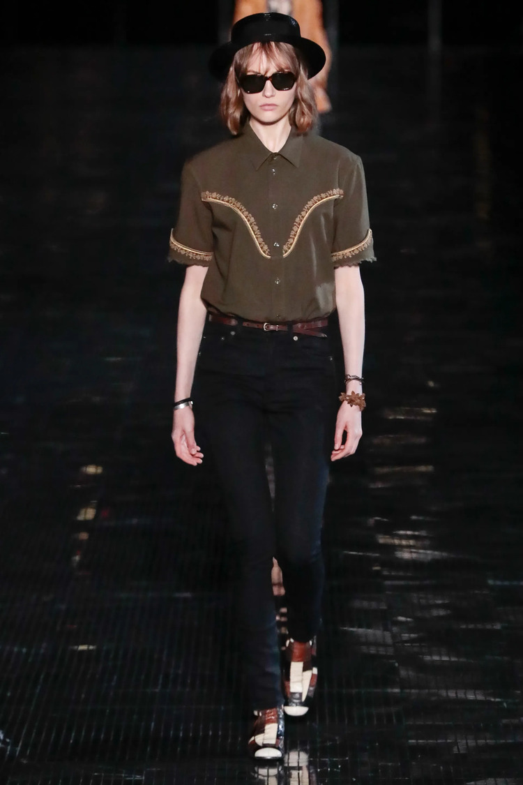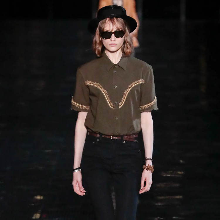 [SAINT LAURENT] S/S 2019 flower embroidered western shirt