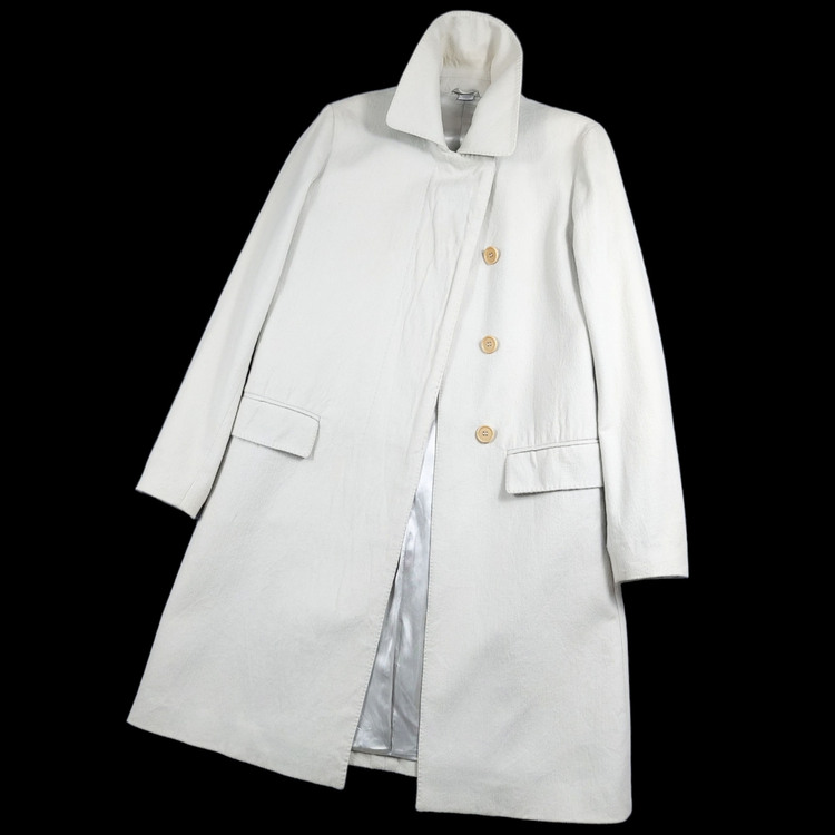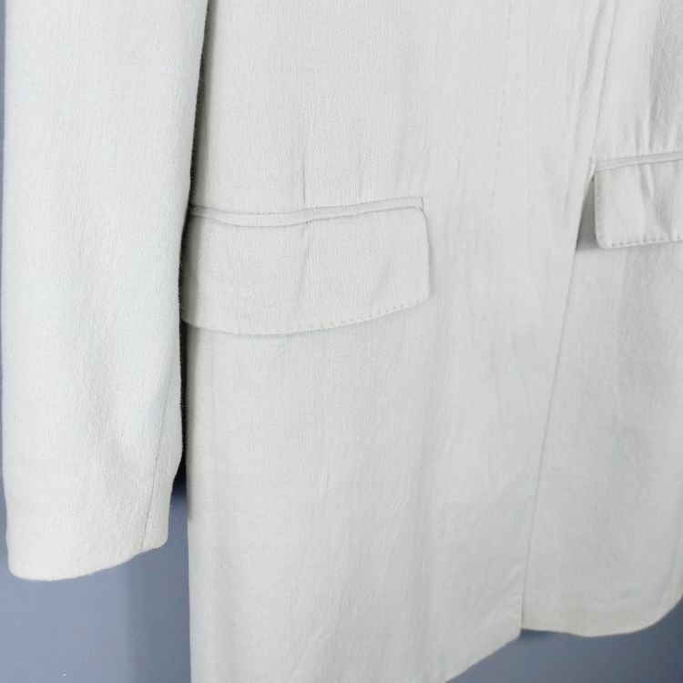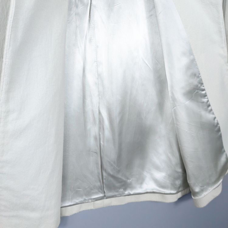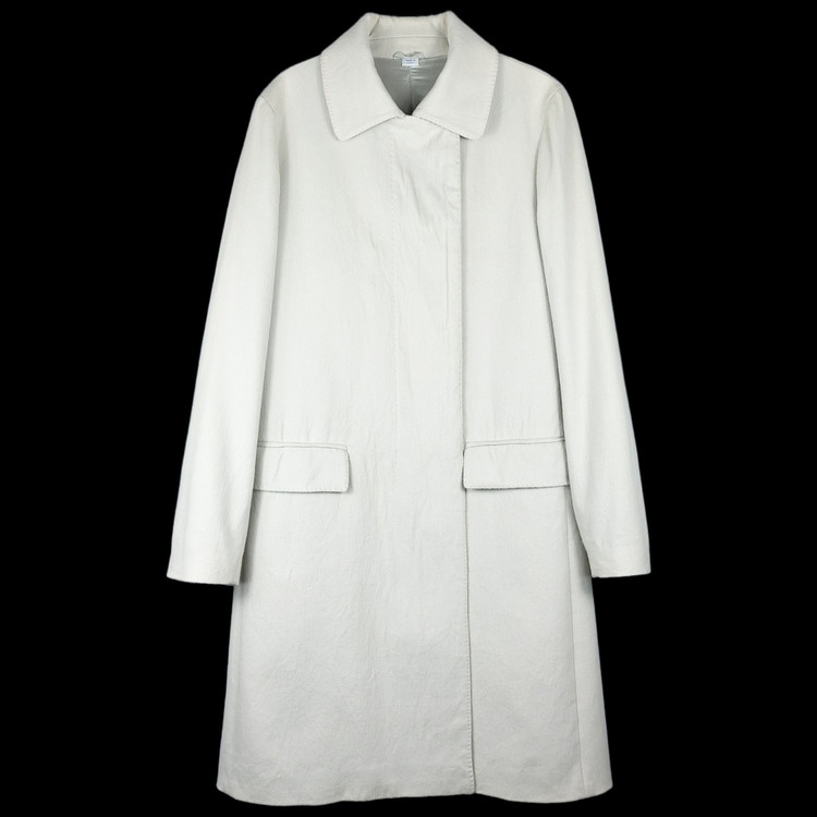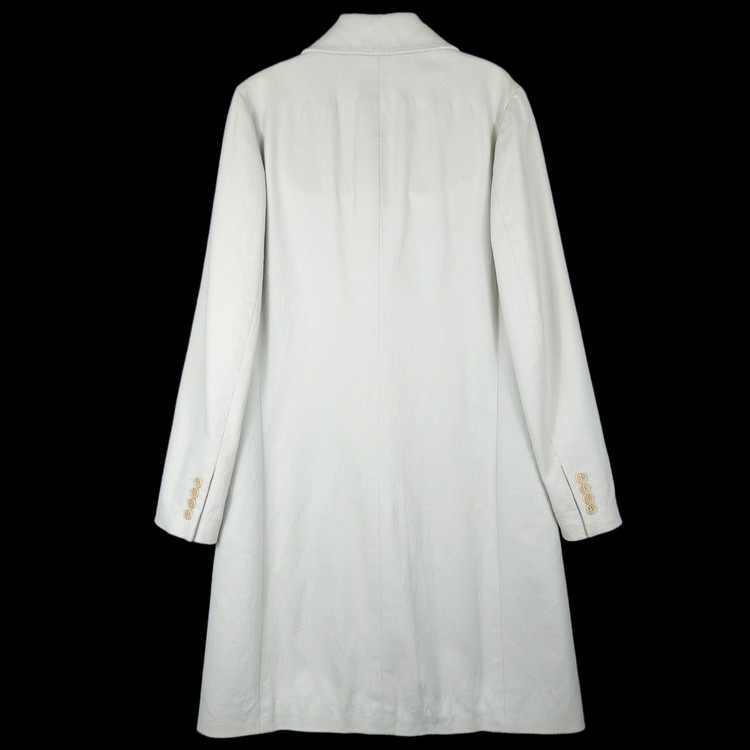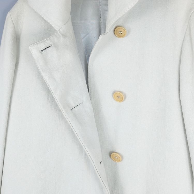 소개 드리는 제품은 S/S 1996 시즌 코트입니다. 면 직물 표면을 긁어 가공한 브러시드 코튼으로, 울 소재와 외형은 비슷하나 부드러운 터치감이 특징인 원단입니다. 군더더기 없는 깔끔한 실루엣이며, 히든버튼과 라펠 연출에 따라 다양한 느낌을 낼 수 있는 아이템입니다. 사이즈는 여성 40사이즈로 55-66 착용하시는 고객님께 추천드립니다. 히든버튼 덮개 주변 버블링 현상이 있으며, 크게 눈에 띄진 않으나 부분 변색이 존재함을 참고 부탁드립니다.