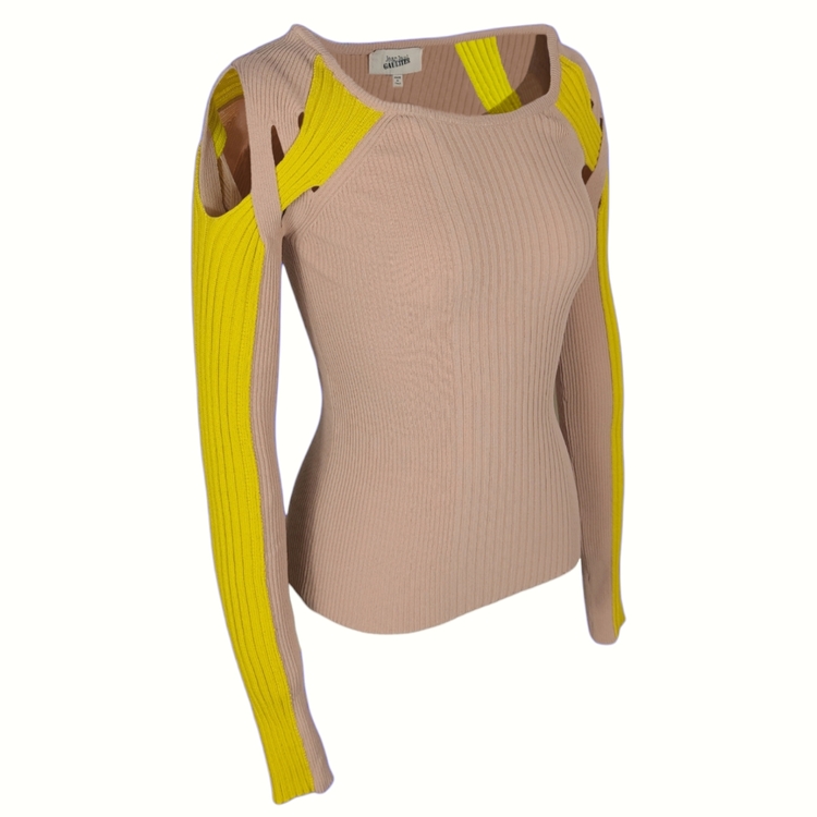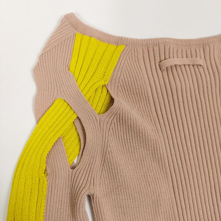 [Jean Paul GAULTIER] shoulder cut-out ribbed knitted top