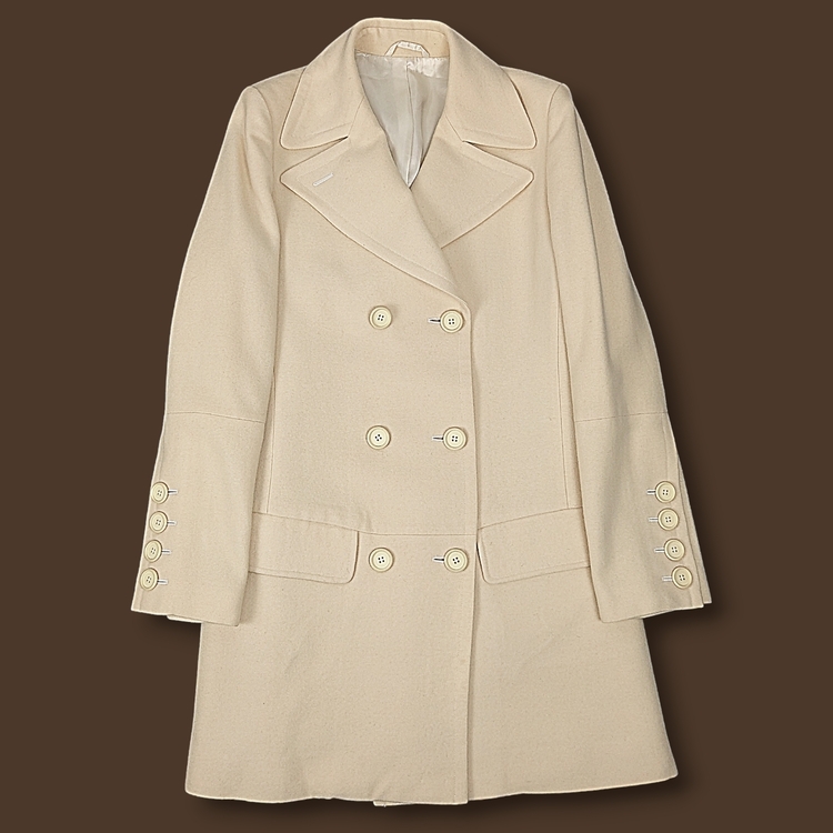 헬무트 랭 초기 아카이브 런웨이 피스입니다. 헬무트랭에서 매년 출시했던 더블 브레스티드 코트의 오리지널인 1993년 제품입니다. 90년대 초반 생산품 특징인 일본산입니다. 짧은 모 길이가 특징이며 팔꿈치와 허리 아래에 있는 수평 솔기가 아방가르드한 느낌을 줍니다. 연식으로 인해 부분적으로 오염 및 원단 깎임 존재하며 마지막 다섯 장의 사진을 통해 확인 부탁드립니다. 국내에서 보기 힘든 아카이브 피스로 해외 시세는 높게 형성되어 있지만, 컨디션을 고려해 합리적인 가격에 소개 드립니다! 표기 사이즈 9AR로 실측 참고해 주시면 감사하겠습니다.