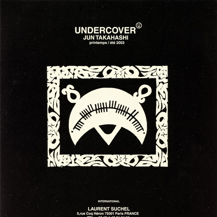 ss2003 시즌은 언더커버가 파리 컬렉션에 첫 데뷔한 시즌으로 전쟁, 제국주의, 자본주의에 반대하는 메시지를 담고 있습니다. 시기상 9/11 직후였기 때문에 해당 컬렉션의 메시지는 대중에게 더욱 인상 깊게 각인되었습니다. 마무리되지 않은 듯한 바느질, 노출 스티치, 패치워크, 강렬한 프린팅 등 정제되지 않은 디테일이 주를 이룹니다. 그중 sedition 그래픽은 추후 여러 시즌에서 꾸준히 사용될 만큼 언더커버의 심볼 중 하나로 자리 잡았습니다.