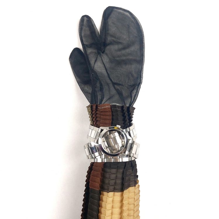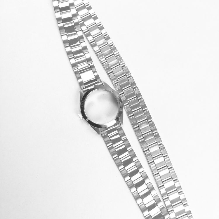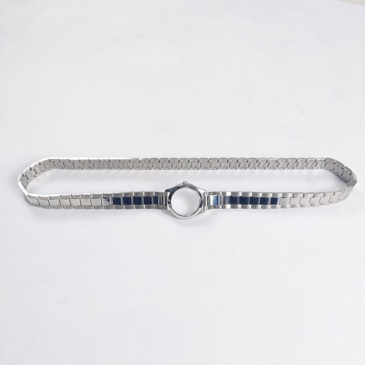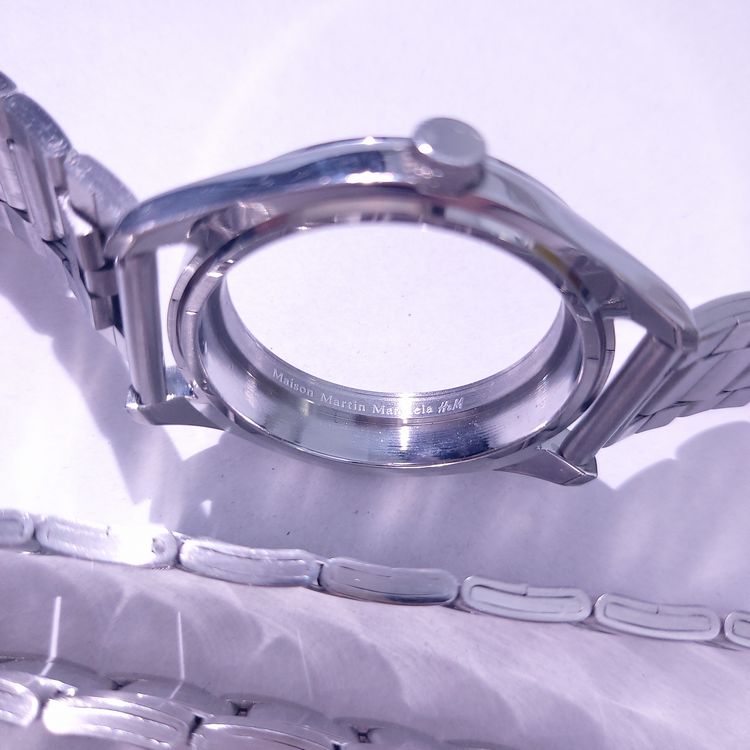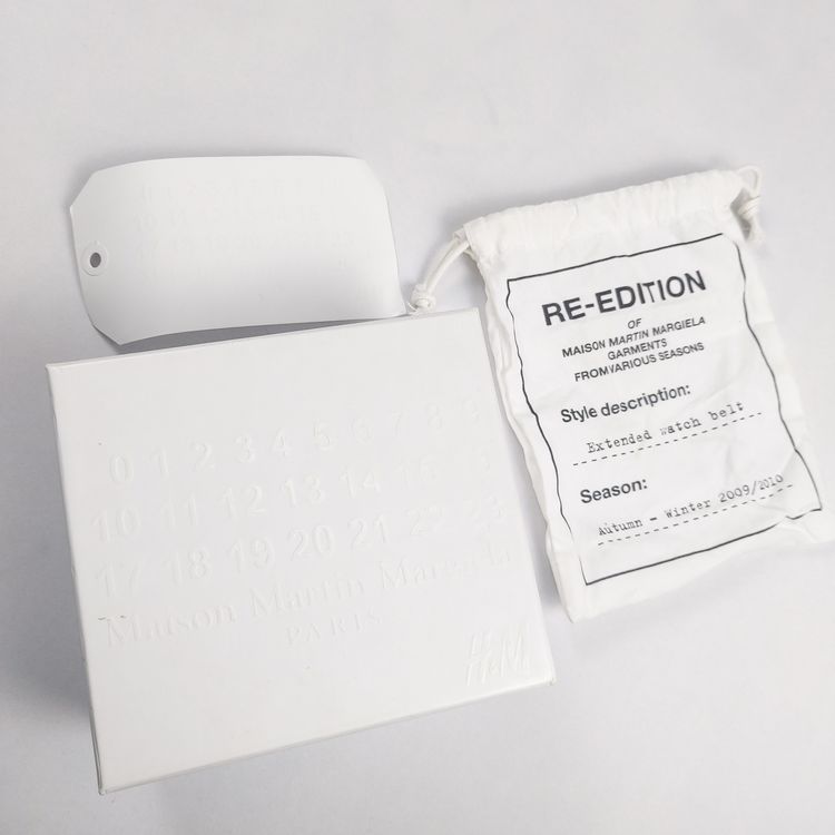마르지엘라 H&M 콜라보레이션 페이스리스 시계 벨트입니다. F/W 2009 시즌 오리지널의 복각 제품입니다. 원본과 디자인과 거의 흡사하여 프리미엄이 많이 붙은 아이템으로 2012년 당시 국내 발매가 13만 9천 원이었으나 현재 해외 시세 100만 원 언저리에 거래되고 있습니다. 출시 의도대로 자켓 위에 벨트로 착용하셔도 좋고, 손목에 2-3회 감아 팔찌로 착용하시면 단품만으로도 볼드하고 블링블링한 무드가 연출됩니다. 사이즈는 S사이즈이며, 풀 구성 및 새 제품급 컨디션으로 소장 가치도 충분한 아이템입니다.