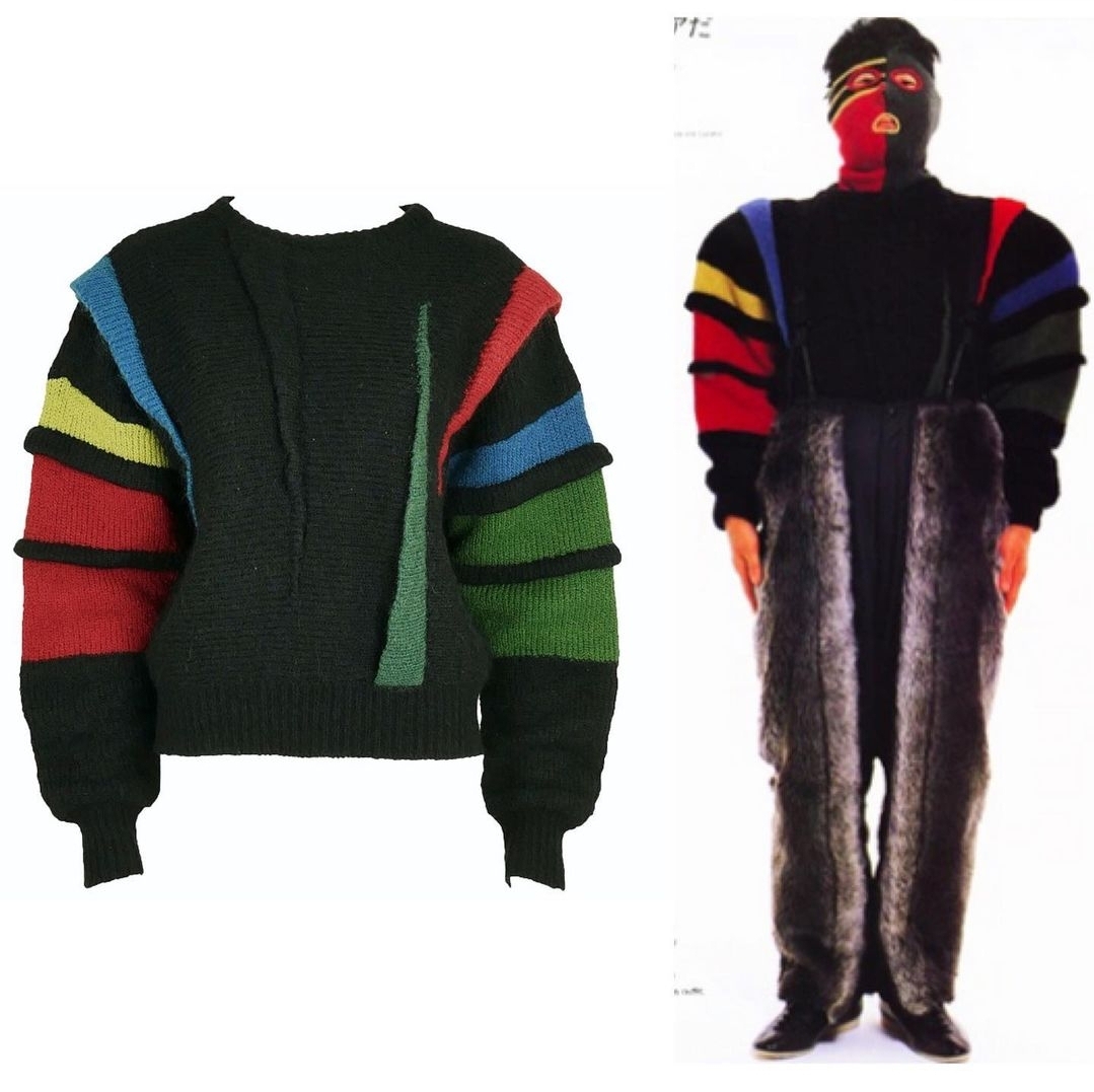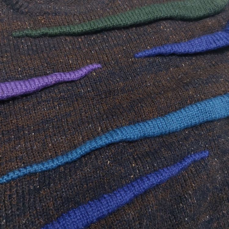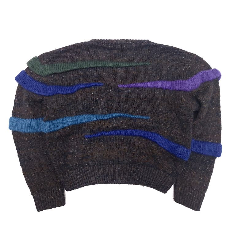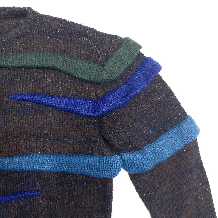 이세이 미야케 3D 러플 니트입니다. 70년대 후반~80년대 초반 빈티지로 컬러 러플이 포인트인 아이템입니다. 크롭 기장과 넓은 어깨가 특징으로 착용 시 귀여운 오버핏이 연출됩니다. 전반적으로 연식에 비해 좋은 상태이며, 보풀이 약간 있지만 컬러가 어둡고 원사가 굵어 눈에 띄진 않습니다!