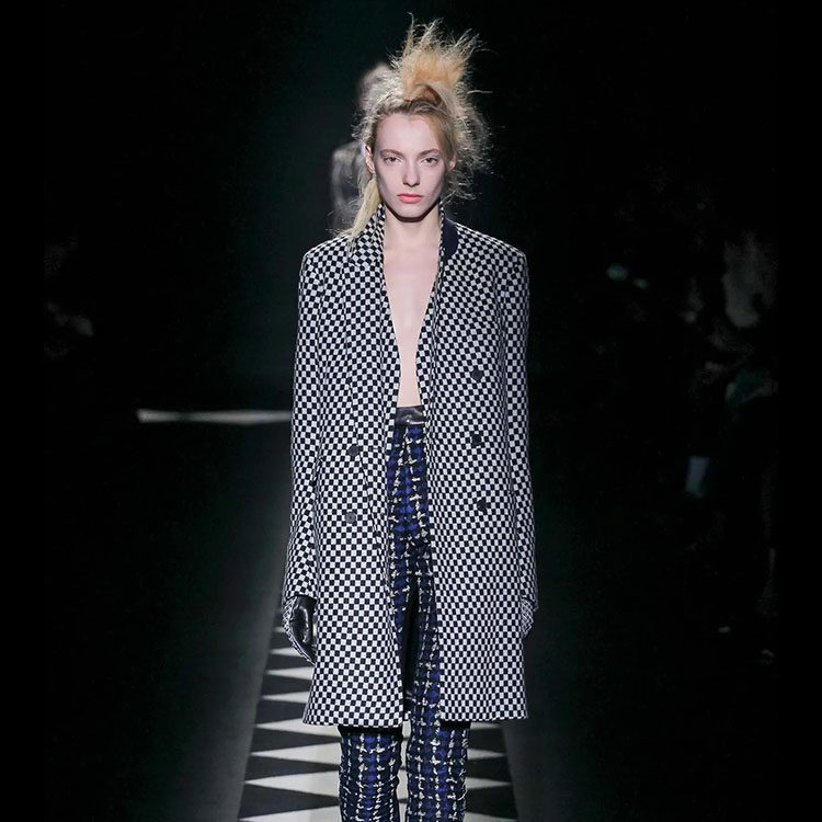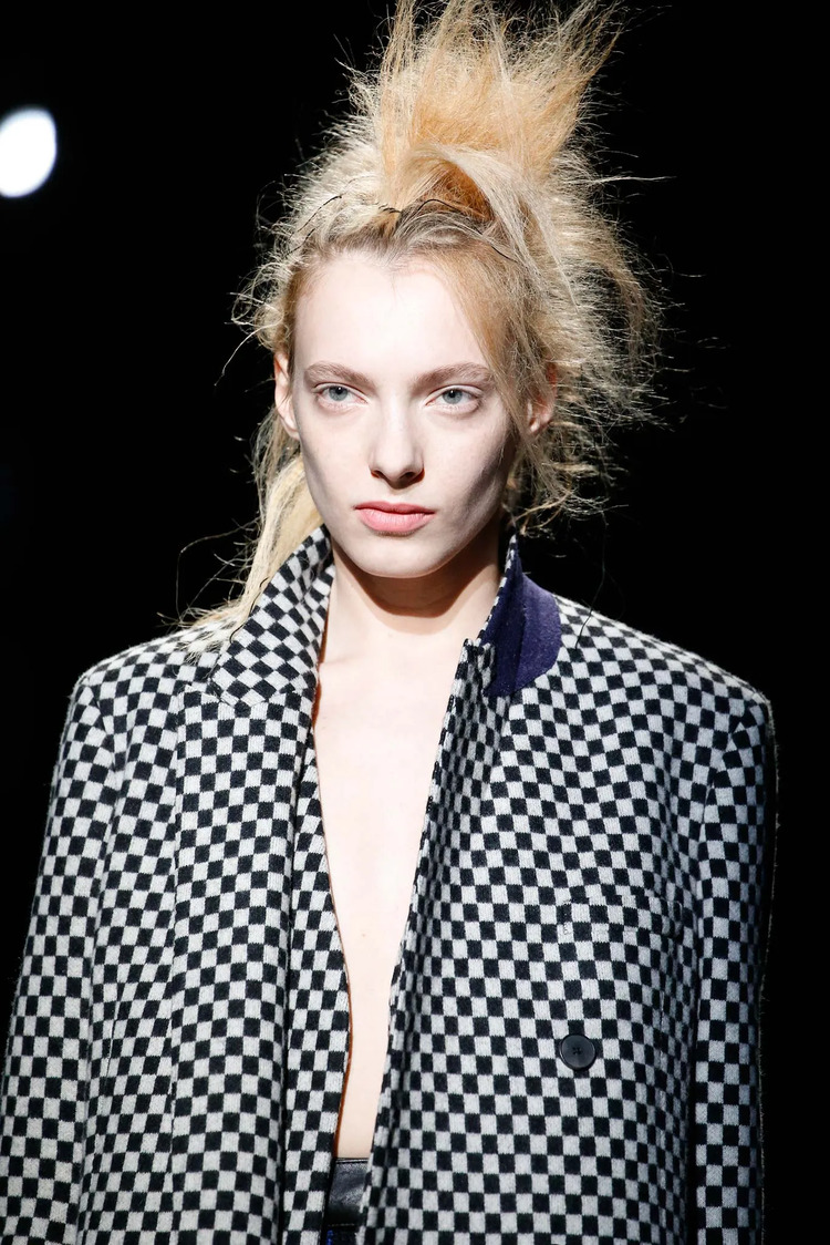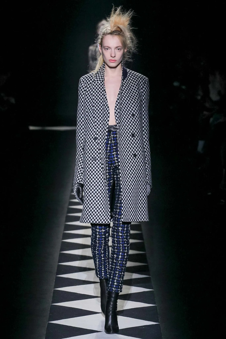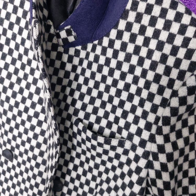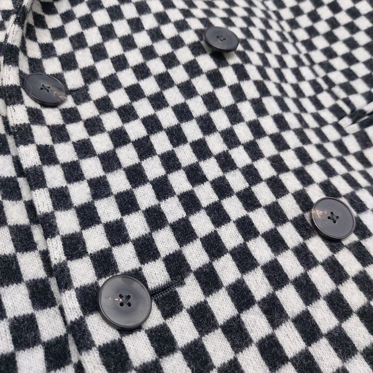 하이더 아커만의 A/W 2015 울 코트입니다. 런웨이 피스로 자잘한 체크 패턴이 특징인 아이템입니다. 니트 조직처럼 보이나 신축성은 거의 없으며, 견고한 양모 원단입니다. 싱글 벤트이며 전면부에는 포켓이 3개 있습니다. 하이더 아커만 아우터에서 종종 볼 수 있는 독특한 소매 체결 방식 또한 재미있는 요소입니다. 사용감 적은 깨끗한 컨디션이며, 표기 사이즈 38로 실측 확인 부탁드립니다!