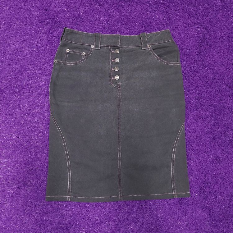 존 갈리아노 시절 디올 S/S 2003 그레이 데님 스커트입니다. 핑크 스티치와 버튼플라이, 후면부 버클이 포인트인 아이템입니다. 버튼과 버클에는 디올 음각이 새겨져 있어 디테일도 재미있습니다. 원단이 두껍지 않고 약간의 신축성도 있어 편하게 착용하실 수 있습니다. 표기 사이즈 유럽 38입니다. 기장 약간 수선된 상태이지만 현재 길이가 더 웨어러블하다 생각됩니다. 자연스러운 페이딩 존재하며 전반적으로 좋은 컨디션입니다!