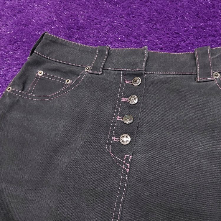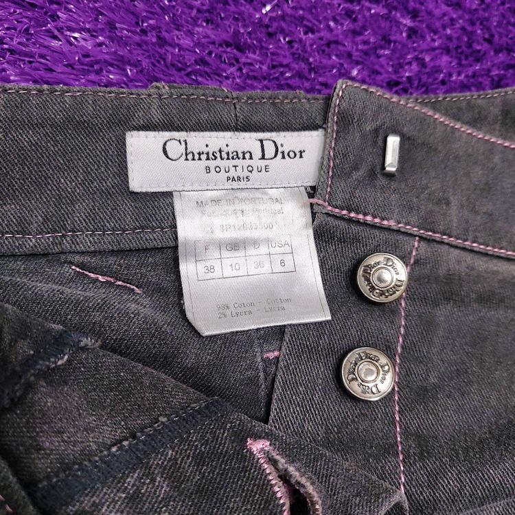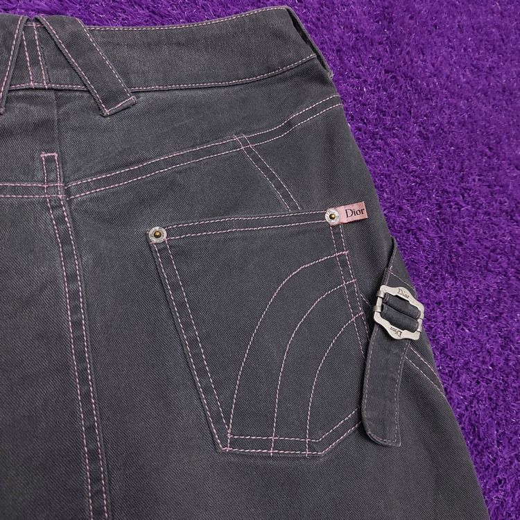 [Christian Dior] S/S 2003 pink stitched grey denim skirt